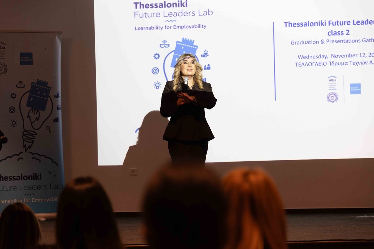 On Wednesday, November 12, the graduation ceremony of the second class of the Thessaloniki Future Leaders Lab programme took place at the Tellogleion Fine Arts Foundation of AUTH. It is an educational initiative of Alba Graduate Business School’s Executive Development department, which is provided free of charge under the auspices of the Region of Central Macedonia, with support from companies with a significant footprint on the city’s economy, such as TITAN, MEVGAL, ELVAL-HALKOR, GEORGAKI LAW FIRM, DEI, OTS, HYATT REGENCY THESSALONIKI, EUROBANK, ACCENTURE HELLAS, and LIDL HELLAS to public university students of the city. These companies, besides the financial support of the initiative, are actively involved in shaping and teaching the content, as well as the learning process. Thus, the programme combines academic excellence with entrepreneurial coherence.